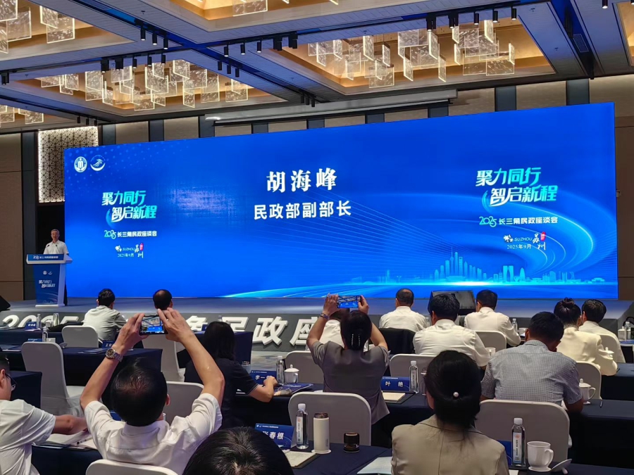 2025年9月28日至29日,长三角民政座谈会在江苏省苏州市举行。民政部副部长胡海峰、江苏省副省长方伟、苏州市市长吴庆文出席会议并致辞。民政部社会组织管理局局长许立群、江苏省民政厅厅长谢晓军、浙江省民政厅厅长陈斌、安徽省民政厅厅长余向东、上海市民政局副局长范传伟等三省一市民政厅(局)负责同志出席会议。江苏省委社会工作部、省发展和改革委员会、长三角地区民政部门的有关负责同志,部分专家学者代表、社会组织代表等140余人参加会议。