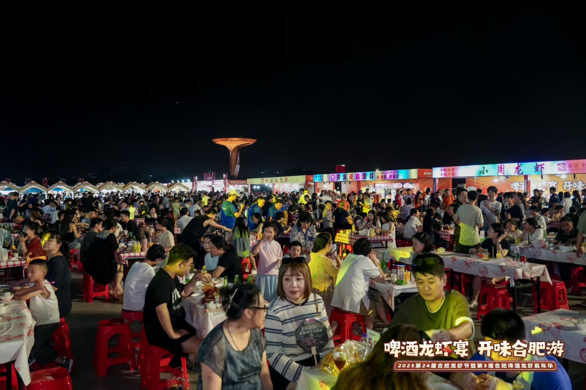 这场精彩的展示背后,是合肥龙虾深厚的产业底蕴与响亮的品牌声誉。合肥早在2007年便荣获“中国龙虾之都”称号,已成功举办二十四届的龙虾节,更将“吃龙虾、喝啤酒、交朋友”塑造成独特的城市文化。在品牌建设的道路上,合肥龙虾一路硕果累累:先后于2015年、2018年荣获国家地理标志证明商标和农产品地理标志,并于2025年4月成功晋升“国家地理标志产品”。蓬勃的龙虾餐饮业是合肥靓丽的城市名片,全市近千家龙虾店年产值高达50亿元,宁国路龙虾美食街、罍街已成为全国闻名的特色餐饮街区。