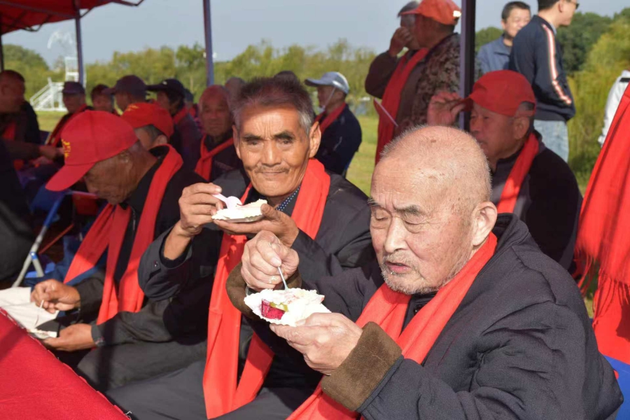 活动现场,当老人代表赵和敏、吴福泉、孔德炎、杨教明和四名老退伍兵代表梅道章、史见长、丁寿永、孔维杰等人登上主席台,鲜美的蛋糕推上台前时,几乎所有的手机、相机、流动的影像纷纷闪动,在美丽的白马山下,被定格在时光里,让秋日的白马山体育公园更加迷人芬芳。