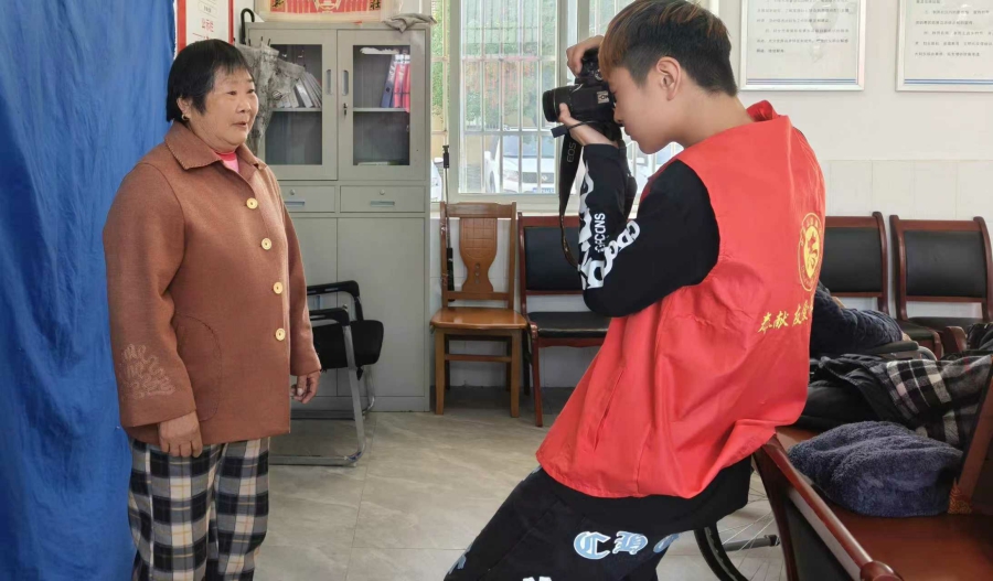 “别紧张,你平时最爱笑了,笑一笑最美丽”,站在一旁的镇老幼工作督导专干赵丹正在和老人说笑,提升老人的自信心,很快,一张精美的照片被打印出来。