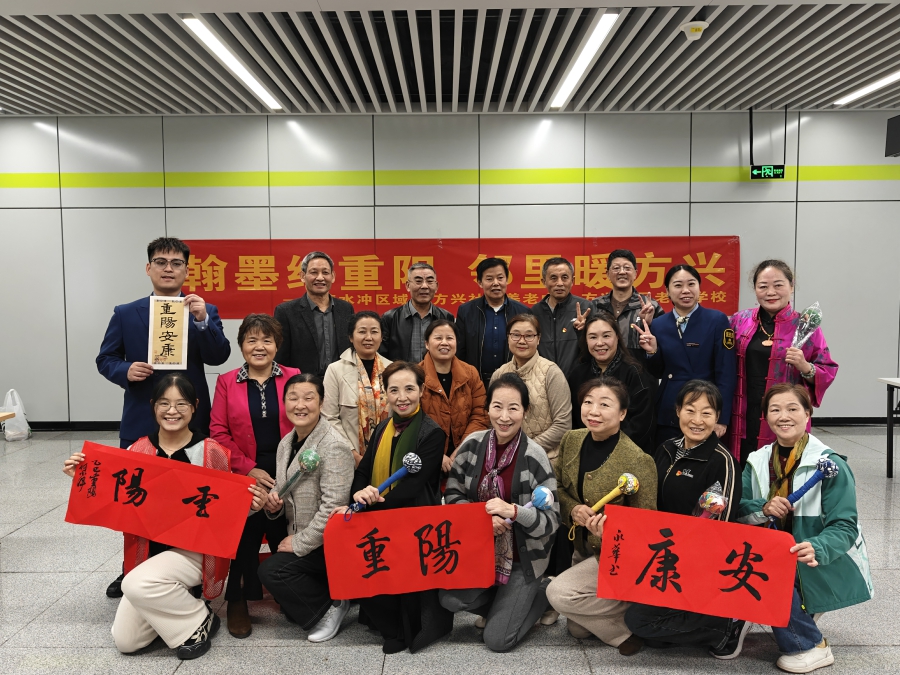 秋意浓,菊正香,在一年一度的重阳佳节之际,为大力弘扬中华民族尊老、敬老、爱老的传统美德,2025年10月29日上午,由方兴湖地铁站、方兴社区养老中心及方兴社区老年学校联合主办的“翰墨绘重阳 邻里暖方兴”主题活动在方兴湖地铁站里温馨上演,为社区长者及来往的乘客带来了一场文化味与邻里情交织的节日盛宴。