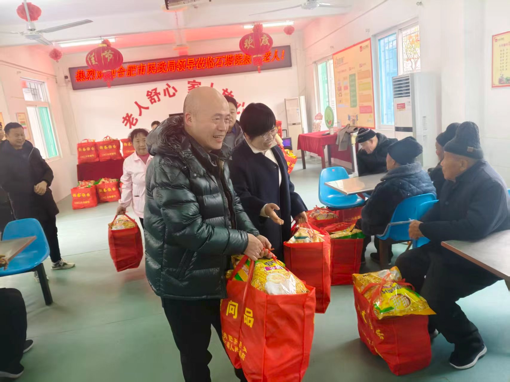 元月28日下午,在肥东县石塘镇养老服务中心和同合社区几户困难群众家中,一份份代表民政温暖关怀的呵护,不停地在传递,那幸福的味道,让腊月的年味又丰盈的几份。