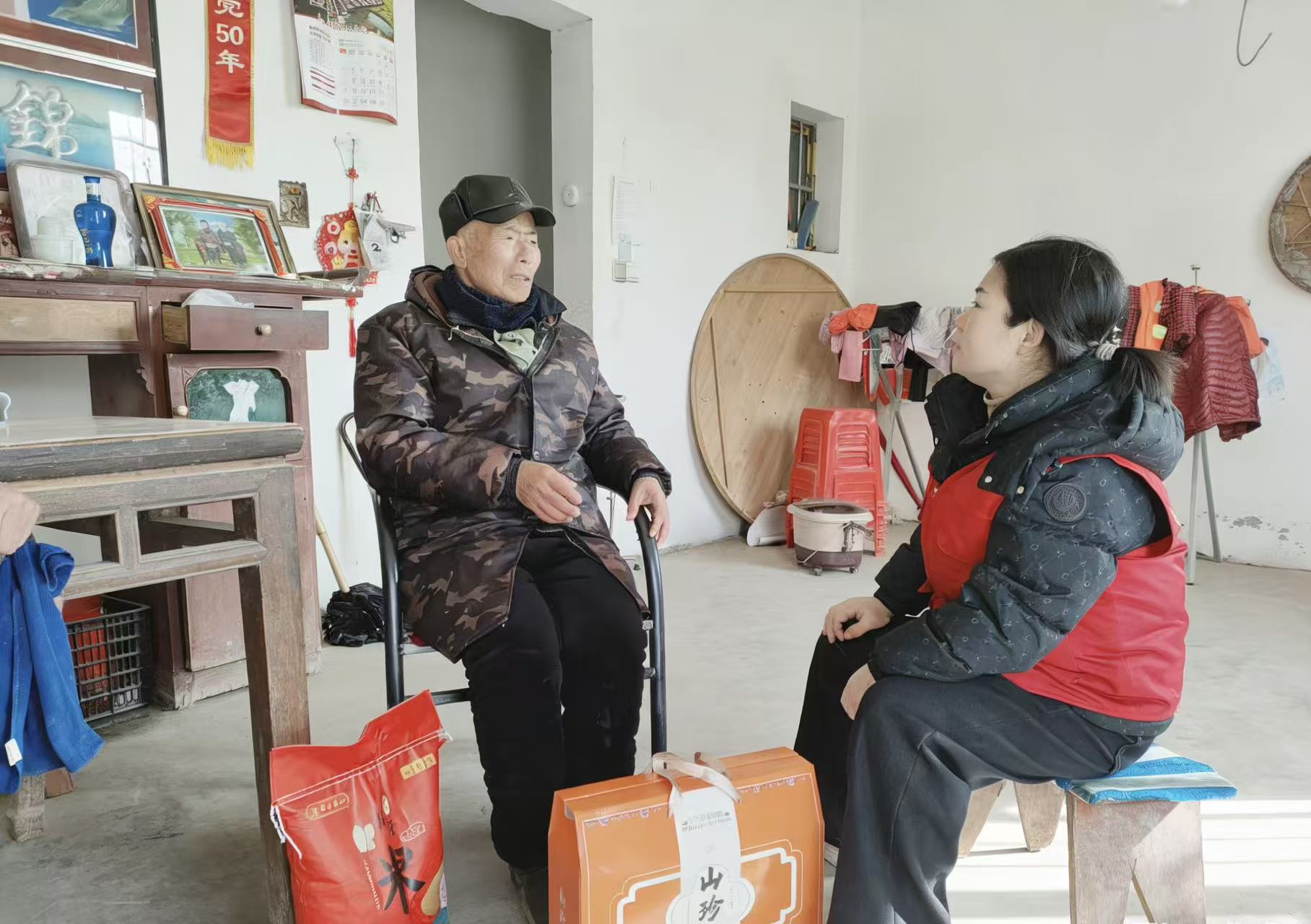 在该县马湖乡三官社区,该乡党委副书记周吉文一大早便与社区老幼专干一道,先后走访慰问了全社区7户老人,将大米和山珍菌送到老人手上,与老人亲切交流,营造了浓浓的喜庆氛围。在留守老人李龙英家中,得知老两口唯一的女儿外嫁,夫妇俩人均有不同程度的身体疾病时,周吉文一边安慰老人保重身体,按时服药,心情舒畅,一边叮嘱随行的专干,要常态化入户随访,有重点进行帮扶,确保老人留守不空档。