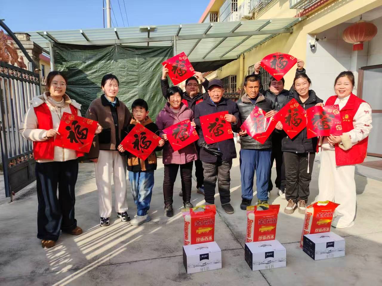 “这么多福字,你们大家看有多喜庆,让我们一起来合个影吧”,在该县石塘镇富光社区组织开展节前慰问“送礼”活动中,老幼专干赵黎荣一边将“礼”物到每一位老人手中,一边和他们拍照留影,定格处,一个个笑脸在飞扬。(肥东县民政局 高桢 从英 玉华 黎荣)