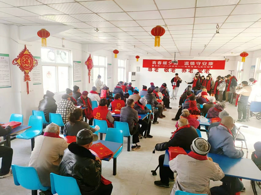 2月11日上午,在肥东县桥头集镇养老服务中心老人活动礼堂,来自市一六八中学的特长孩子们,正在给老人们带来的一场自编自演的“文艺演出”慰问活动,演出的曲目大都是老人们喜欢的“经典老歌”。喜欢音乐的葛大爷笑眯眯地跟着音乐节奏一边打拍子,一边哼唱着,周边的老人个个听的如醉如痴,一时间,诺大的礼堂仿佛进入了老人们的年轻时代,飞扬的曲调中,对往日时光的回味一时让老人们非常感动。